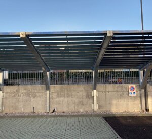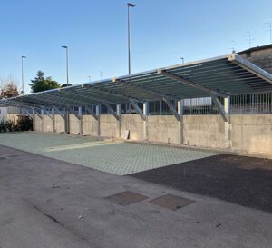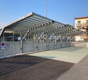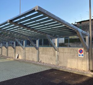 Scuola di Mezzocorona. Realizzazione di pensilina auto in acciaio zincato.