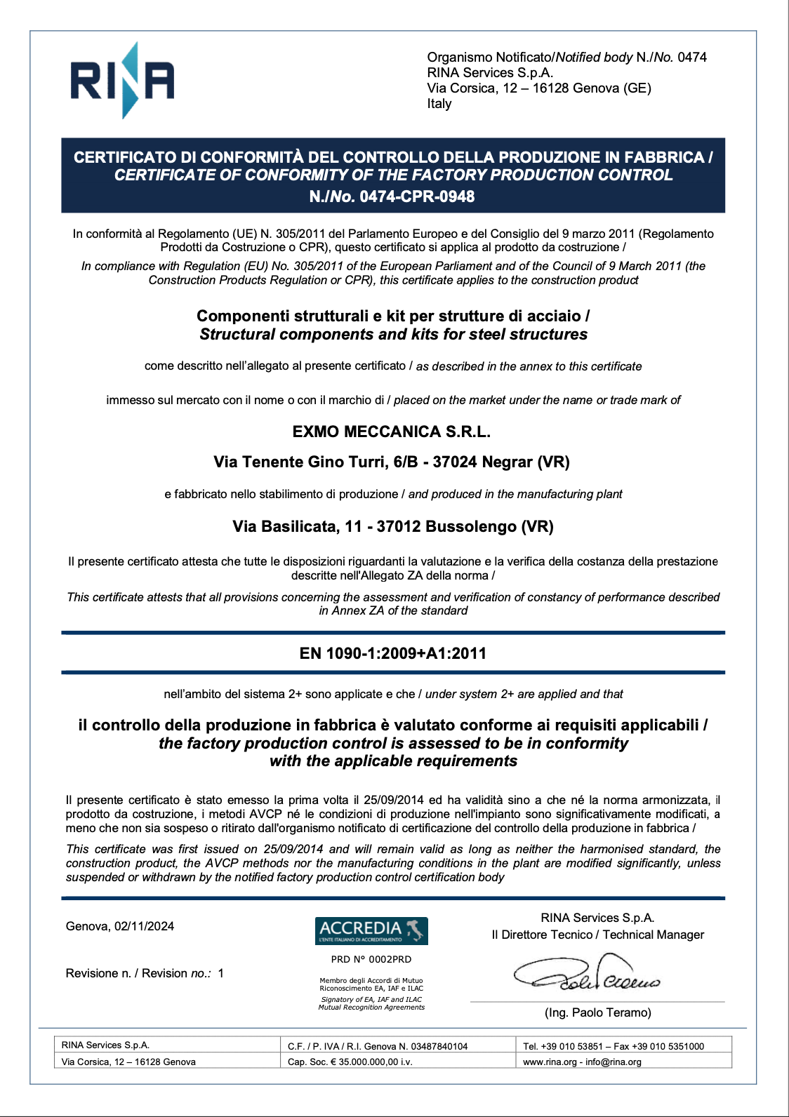 La nostra Azienda è certificata in conformità alla legge 1090 del 1 luglio 2014, che permette di entrare in qualsiasi cantiere edilizio e di apporre la certificazione CE su tutte le nostre opere.